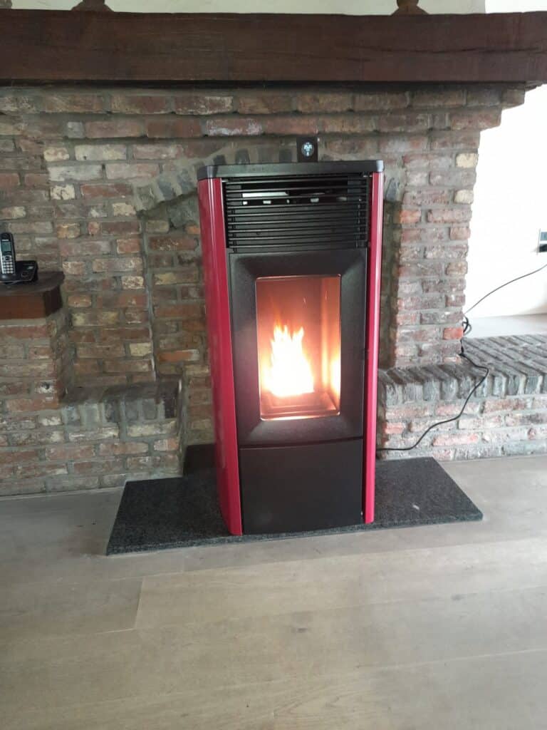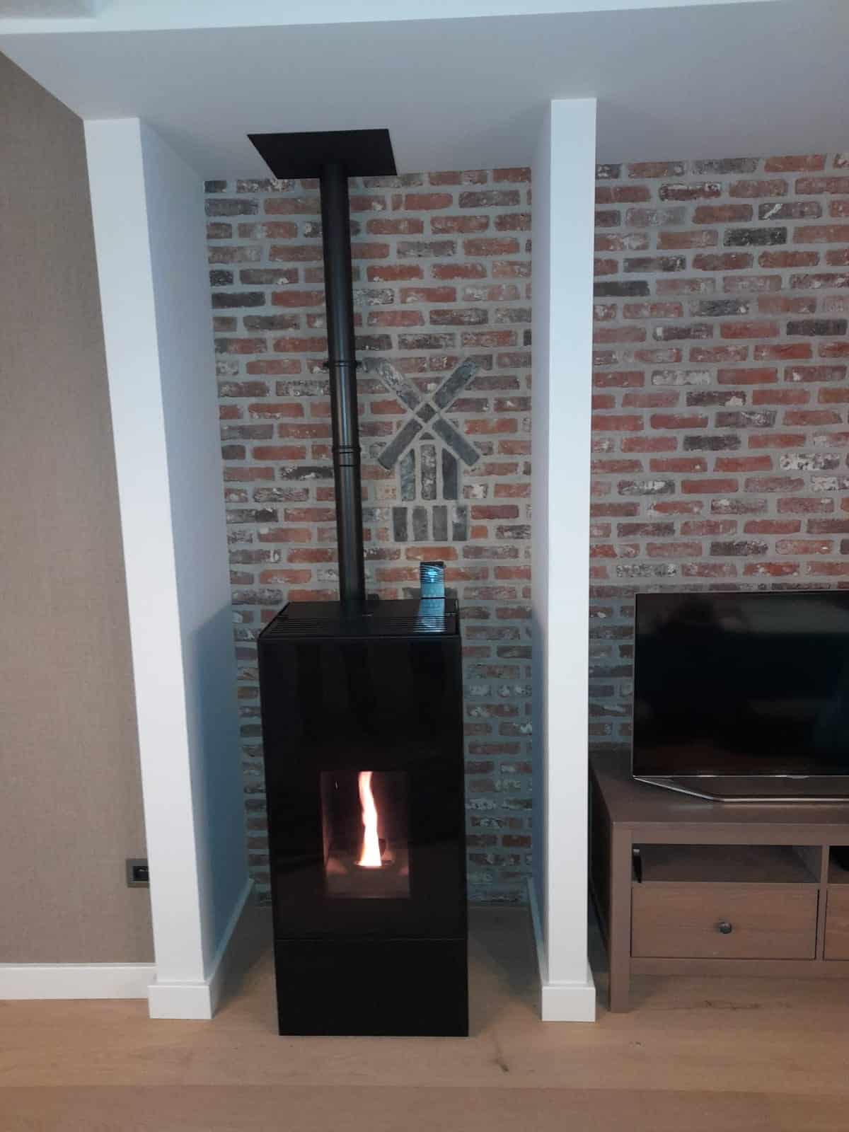 In deze opstelling is gekozen voor een frontmodel waarbij aan de linkse zijde een zone voorzien is voor houtopslag. Dit maakt het handig om snel en eenvoudig hout te kunnen stoken.