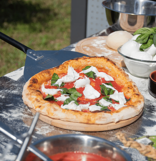– Alle accessoires uit de Essential Kit: pizzasnijder, deegspatel, laserthermometer, deegbox, schort en ovenhandschoenen